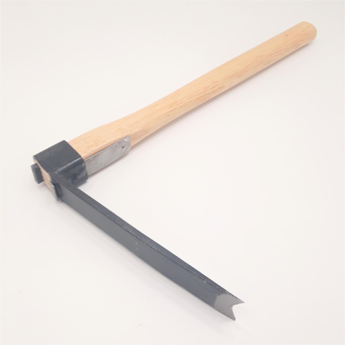 Pequeña azada japonesa para utilizar con una sola mano, forjada en acero japonés extremadamente duro y resistente, con una hoja larga y estrecha y filo cóncavo, perfecta para hacer surcos, aflojar en profundidad, trasplantar hortalizas, cortar raíces, utilizar como gubia, etc.