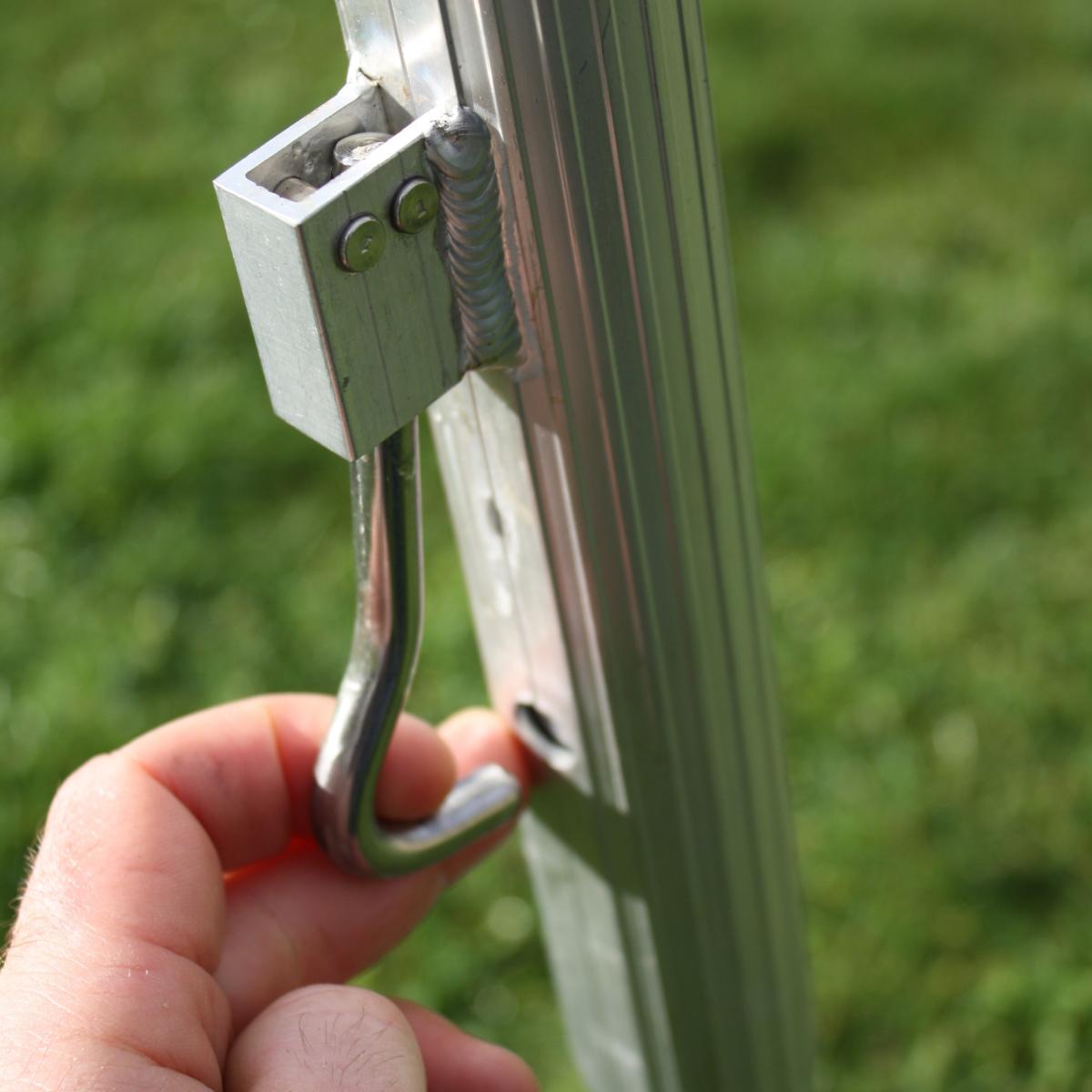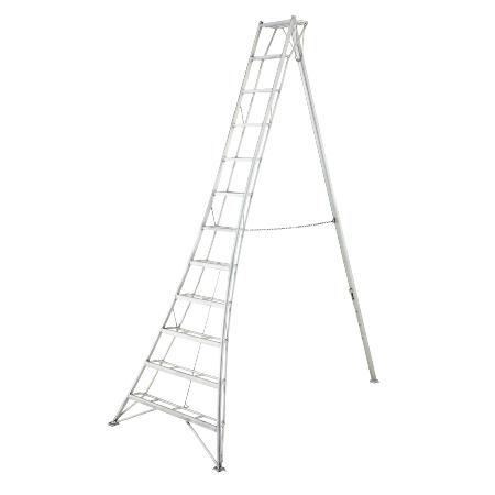 Estas escaleras, muy ergonómicas y cómodas, permiten trabajar muy cerca de las plantas (por ejemplo, introduciendo la pierna trasera entre ellas) y colocarse fácilmente apoyando el pie trasero en medio de las plantas de un parterre, por ejemplo, sin dañarlas... ¡Siempre es más fácil encontrar 3 puntos de apoyo estables que 4!