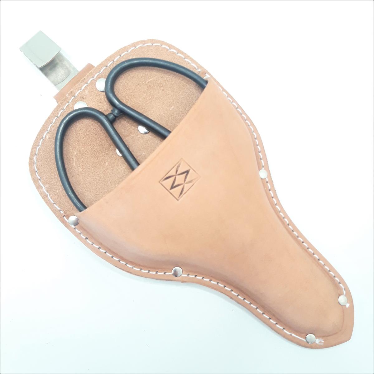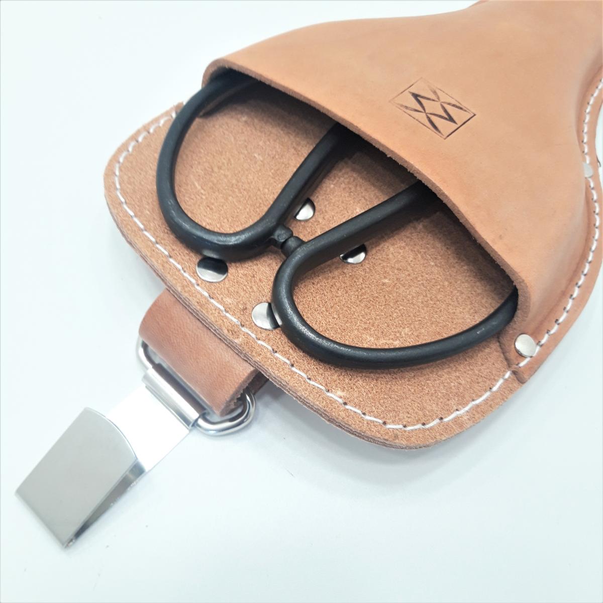 Estuche de cuero MUY reforzado y de gran calidad (marca MASAMUNE) para tijeras tradicionales de jardineros japoneses, apto para hojas de 60 a 90 mm de largo.