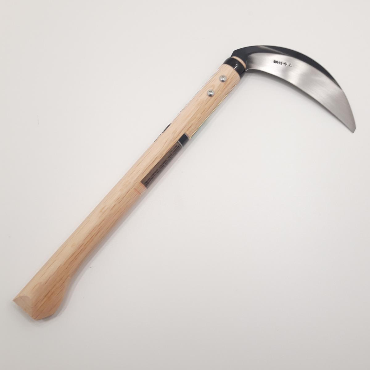 Kama, auténtica hoz tradicional japonesa con hoja de un solo filo, ligeramente curvada, forjada en caliente con acero cromado (tipo YCS3) que garantiza la dureza y la durabilidad de la hoja (¡índice de dureza HRC62!).