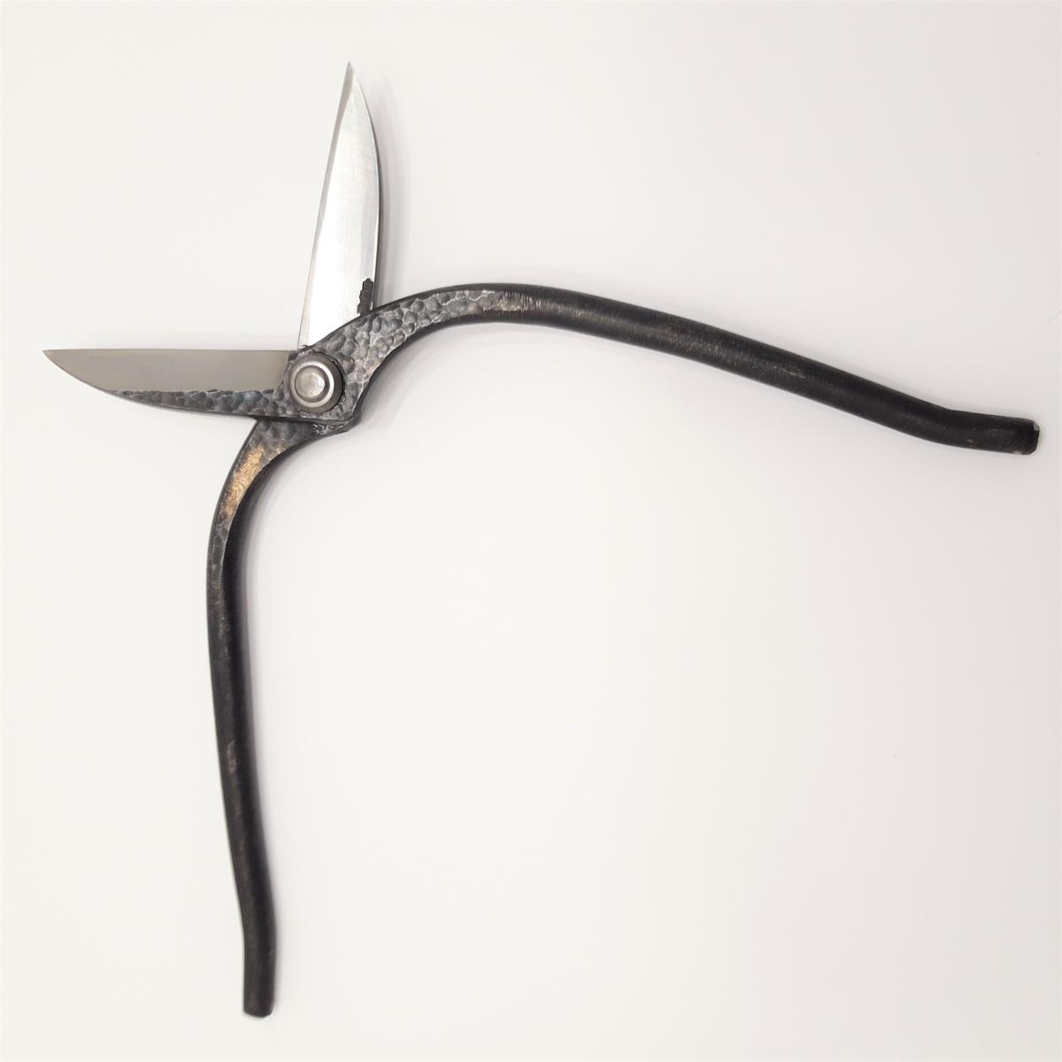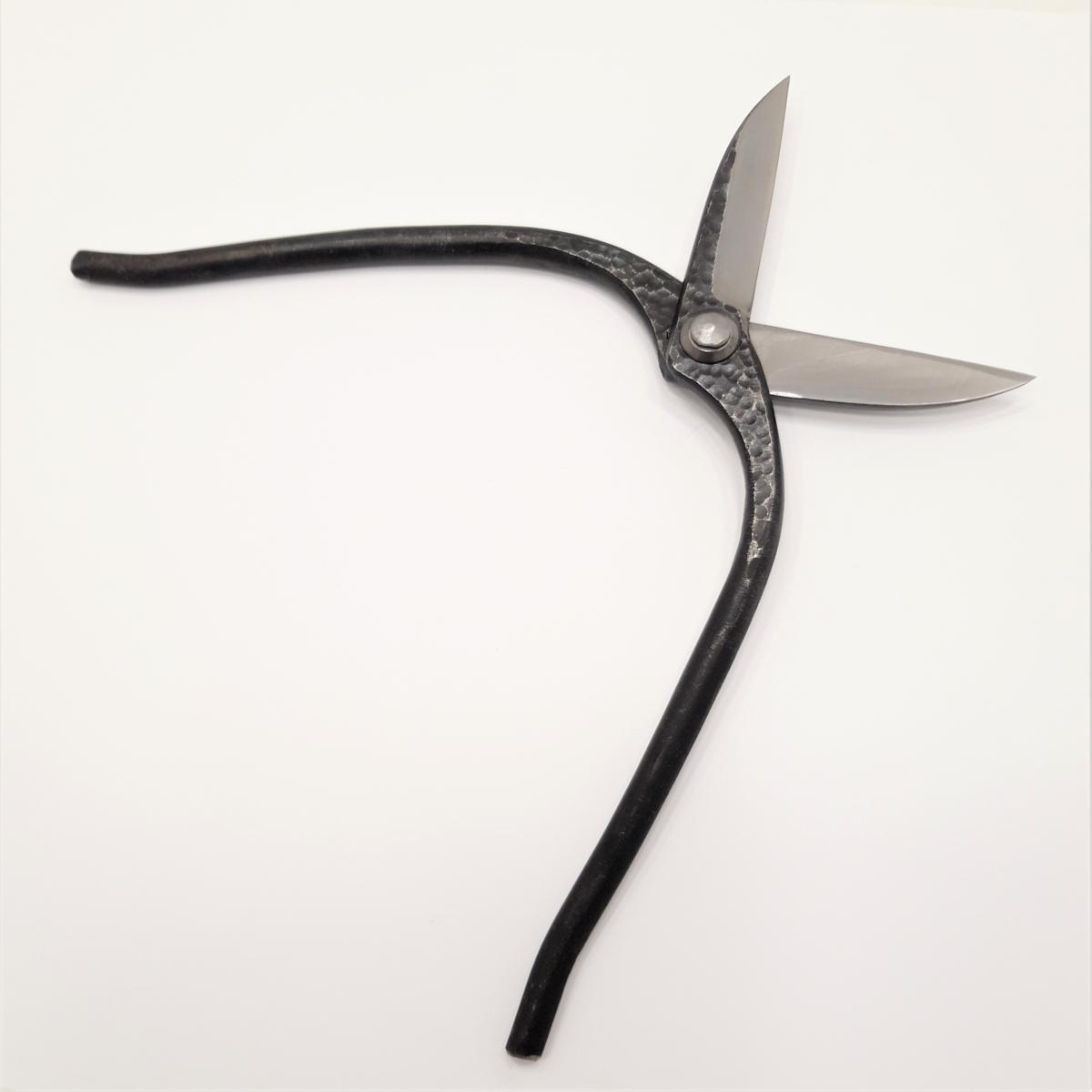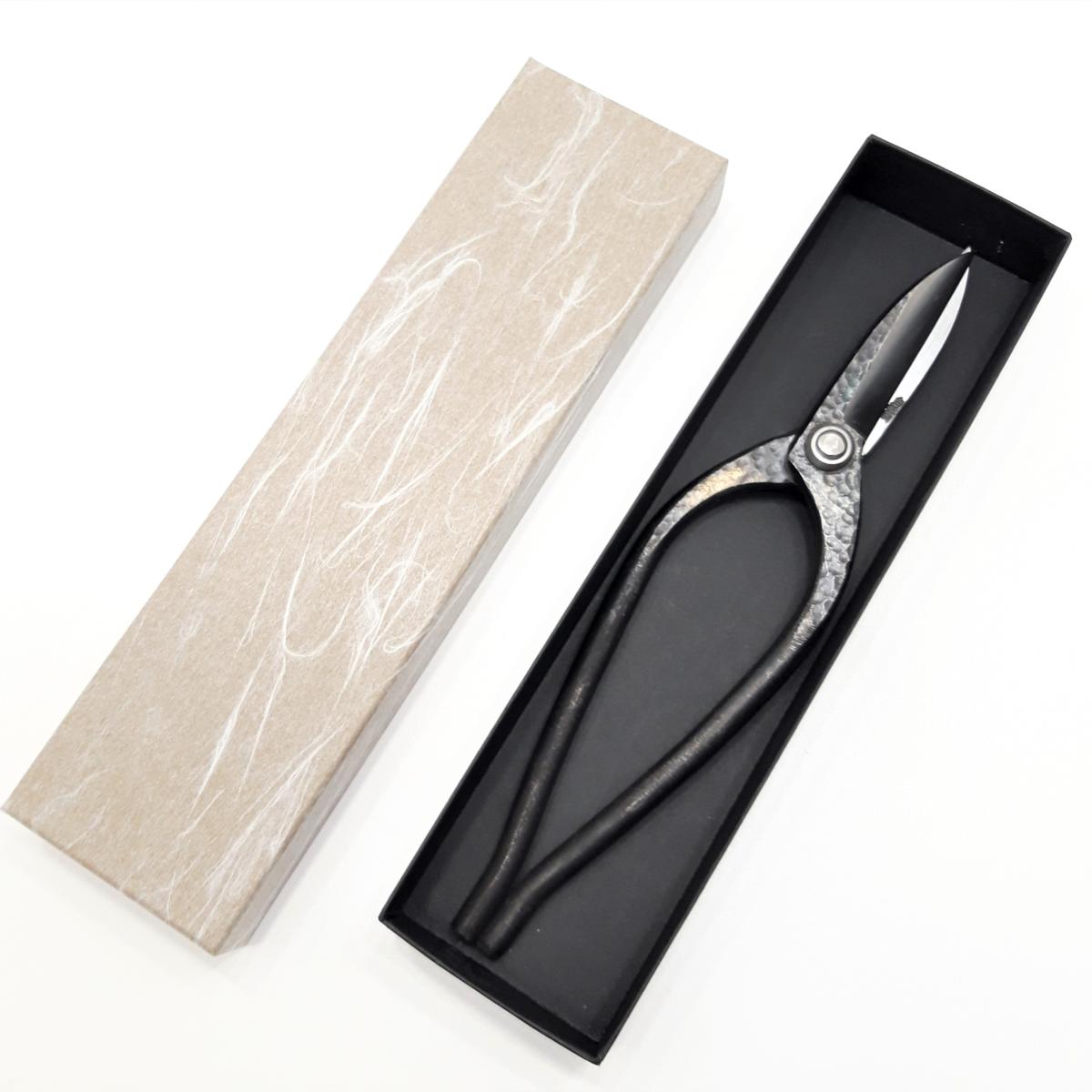 Tijeras de acero Shirogami utilizadas habitualmente por los floristas, conocidas como «Hanaya basami» 花屋鋏 (tijeras de florista) o por los jardineros, que las denominan «Kiribashi» 切鋏 (tijeras cortantes). Acabado martillado. ¡Magníficas!