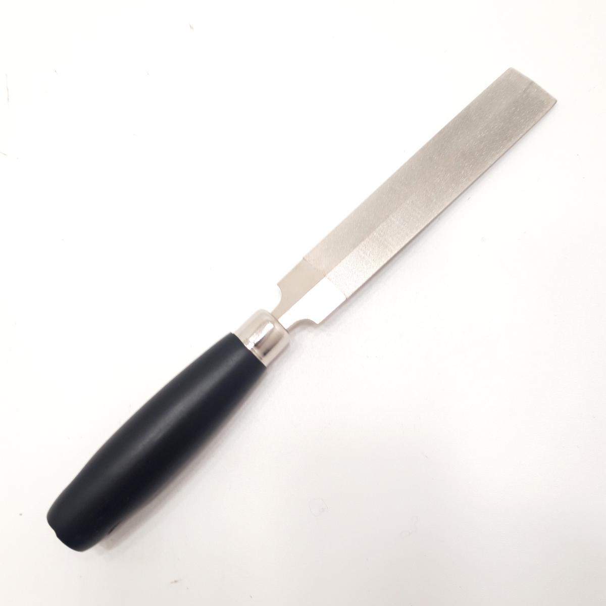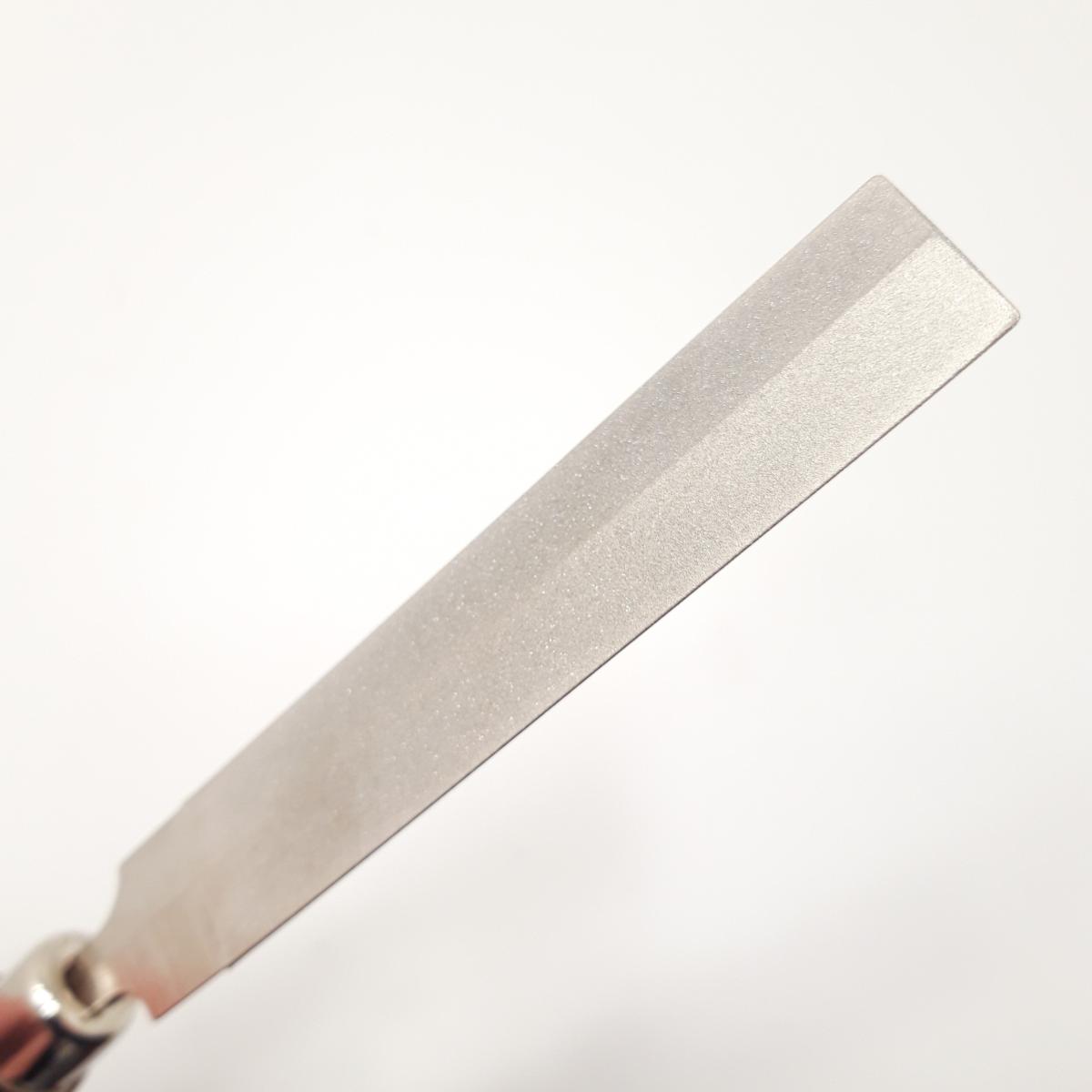 Grosor de la lima: 3 mm (ángulo obtuso de 165° en la parte «plana», ángulo agudo de 20° en los bordes).